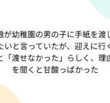 娘が幼稚園の男の子に手紙を渡したいと言っていたが、迎えに行くと「渡せなかった」らしく、理由を聞くと甘酸っぱかった