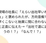 現場の社長に「えらい出社早いねぇ」と褒められたが、方向音痴で早くこないと始業に間に合わないと正直に伝えた→「出社で道に迷うの!?」「なんで!?」
