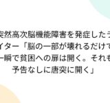 突然高次脳機能障害を発症したライター「脳の一部が壊れるだけで一瞬で貧困への扉は開く。それも予告なしに唐突に開く」