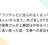 「フジテレビに出られなくなってもいいから言う」めざまし8で古市憲寿さんが上層部はやめるべきと言い放った話…文春への言及も