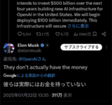 イーロン・マスク氏「ちょっと待って!例のAI投資企業らはそんなにお金もってないだろ!」