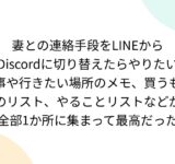 妻との連絡手段をLINEからDiscordに切り替えたらやりたい事や行きたい場所のメモ、買うものリスト、やることリストなどが全部1か所に集まって最高だった