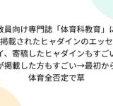 教員向け専門誌「体育科教育」に掲載されたヒャダインのエッセイ、寄稿したヒャダインもすごいが掲載した方もすごい→最初から体育全否定で草
