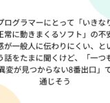 プログラマーにとって「いきなり正常に動きまくるソフト」の不安感が一般人に伝わりにくい、という話をたまに聞くけど、「一つも異変が見つからない8番出口」で通じそう