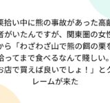 栗拾い中に熊の事故があった高齢者がいたんですが、関東圏の女性から「わざわざ山で熊の餌の栗を拾ってまで食べるなんて賤しい。お店で買えば良いでしょ!」とクレームが来た
