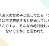 筑波大の女の子と話してたら『つくば市で恋愛すると結婚してしまうんですよ、そんなの絶対嫌じゃないですか』と言われた