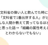 文科省の偉い人と飲んでた時に「文科省で1番出世する人」がどんな人間か教えて貰ってなるほどと思った話→「組織の属性考えるとわからないでもない」