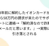 3年前に解約したイオンカードから58万円の請求が来たのでサポートに連絡→『解約済なので詐欺メールだと思います。』→実際に引き落とされる