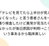 「テレビを見てたら上半分が見えなくなった」と言う患者さんを一通り検査したけど異常が見当たらなかったが後日原因が判明→こういう事あるから臨床楽しい