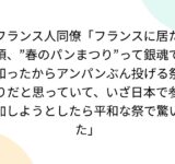 フランス人同僚「フランスに居た頃、”春のパンまつり”って銀魂で知ったからアンパンぶん投げる祭りだと思っていて、いざ日本で参加しようとしたら平和な祭で驚いた」