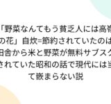 「野菜なんてもう貧乏人には高嶺の花」自炊=節約されていたのは田舎から米と野菜が無料サブスクされていた昭和の話で現代には当て嵌まらない説