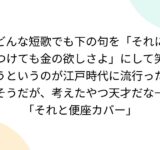 どんな短歌でも下の句を「それにつけても金の欲しさよ」にして笑うというのが江戸時代に流行ったそうだが、考えたやつ天才だな→「それと便座カバー」
