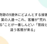 奇跡の9連休にどよんとする接客業の人達→これ、客層が"荒れる"ことが一番しんどい「普段と違う客層が来る」