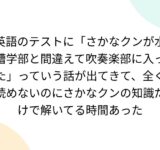 英語のテストに「さかなクンが水槽学部と間違えて吹奏楽部に入った」っていう話が出てきて、全く読めないのにさかなクンの知識だけで解いてる時間あった