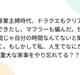 専業主婦時代、ドラクエもクリアできたし、マフラーも編んだ。世間じゃ自分の時間なんてないと聞く。もしかして私、人生でなにか重大な家事をやり忘れてる??