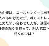 大企業は、コールセンターにAiを入れるの必死だが、Aiでストレスためた問い合わせた人が、通常の3倍の怒りを持って、対人窓口へ行くのでは?