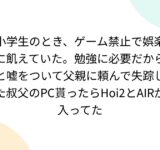 小学生のとき、ゲーム禁止で娯楽に飢えていた。勉強に必要だからと嘘をついて父親に頼んで失踪した叔父のPC貰ったらHoi2とAIRが入ってた