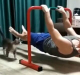 体重を使った筋トレをしていたら…猫がスパルタしてくるとき