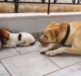 拾ってきた子犬が怯えていたけど…心を溶かしてくれたのは先輩犬だった