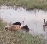 翼を広げて家族を守る父鳥…野生のガンが見せた家族愛