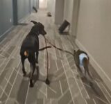 犬がワラビーに嫉妬していたと思ったら…リードを口にくわえて一緒に散歩する(動画)