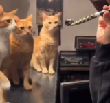 猫3匹の前で「吹き戻し」で遊んでみたら…予想外の結末を迎える
