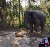 ゾウが足元で眠っていた犬に気付いてびっくり…「ごめんよー」と迂回する