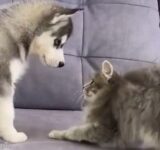 「なんてコミュ力の高い子犬だ…」警戒する子猫との距離の縮め方がすごく上手