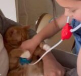 女の子の「お医者さんごっこ」に付き合ってあげる猫(動画)