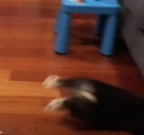 おもちゃを追いかける犬が…ソファの下にスライディングして突入する(動画)