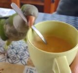 やたら情熱的にコーヒーをかき回すインコ(動画)
