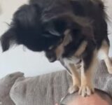 絶妙なバランスで頭をマッサージしてくれる犬(動画)