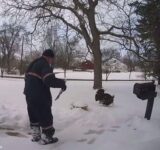 郵便配達員が七面鳥にからまれる…威嚇するほど逆効果(動画)