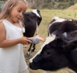 小さな女の子のインタビューに完璧に答える子牛(動画)