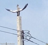 「なんだか神々しい鳥が電柱の上にいるんだけど…」羽を広げている理由