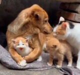 「なんという幸せ空間…」子猫にもママ猫にも愛される犬