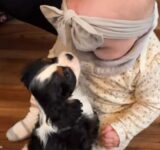 赤ちゃんと子犬が出会った瞬間から親友になる(動画)