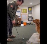 ゴルフのパット練習を手伝ってくれる犬(動画)