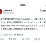 【高市総裁誕生】フェミニストの女王「うれしくない。ジェンダーギャップ指数で日本のランキングが上がるだろう。だからといって女性に優しい政治になるわけではない」→ツッコミ殺到
