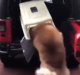 ちょっとやそっとの困難などものともせずケージに入ってくれる犬