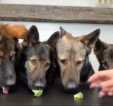 「ジャーマンシェパード4匹にフードレビューをしてもらったら…」四者四様のリアクションになる