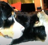 リスが犬の毛にどんぐりを隠そうとしてきて困惑させる「え!?」(動画)