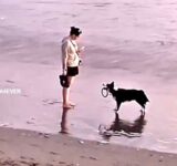 犬「これ投げて!」ビーチで知らない人たちにおねだりする