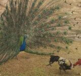 「もしかして求愛!?」孔雀がニワトリに立派な羽を見せつける(動画)