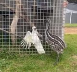 赤ちゃんエミューとオウムがじゃれ合うと…こんな対決になる(動画)