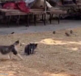 「ドキドキを返して!」初めての狩りをする子猫…背後の兄弟に台無しにされる