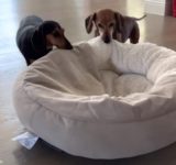 必死にベッドを運ぶ犬…最高に寝心地のいい場所を知っていた(動画)