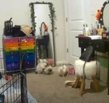 「あぶなっ!」やんちゃなウサギが全身鏡を倒してしまう(動画)