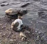 海で漁をする猫「魚をワイルドにキャッチ…」(動画)