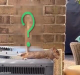 リスが室外機の上に寝そべると「しっぽ」の長さがよくわかる